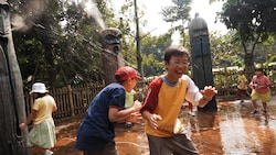 Rumbling drums and an odd mist invite you to stand in a circle of wood statues, known for shooting water at passers-by.