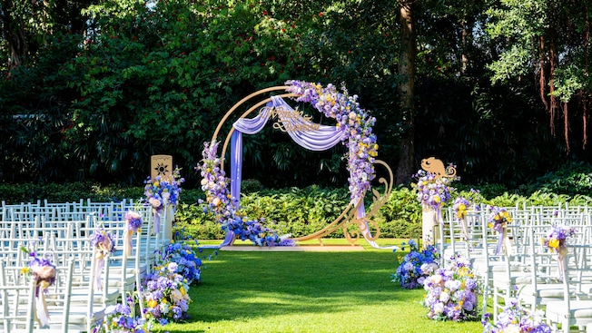 It is a natural beauty to decorate Pastel Violet color under the azure sky and the greenfield. The pastel violet floral and flourishing greenery together create a dreamy bucolic scene perfect for a romantic ceremony. Rapunzel and her true and loyal friend, Pascal, will convey their warmest regards to the newlyweds under the sky lanterns, with a beautiful symbol of hope and love.