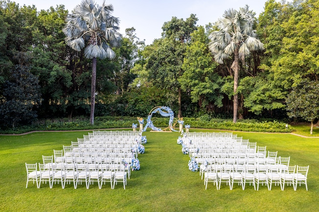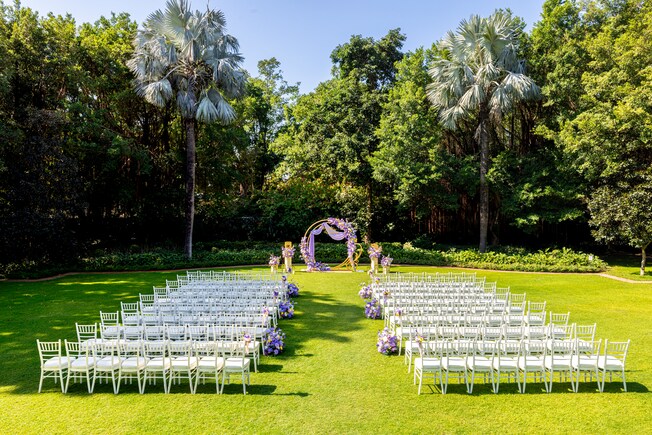 Celebrate the most romantic moment with your loved ones under the blissful nature with greenery and a sea of flowers with loved ones witnessing the eternal oath.