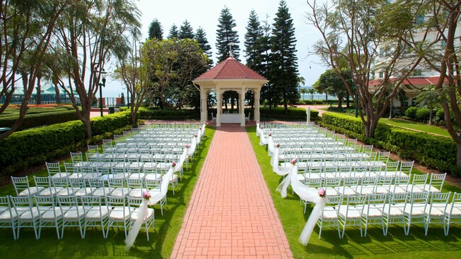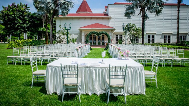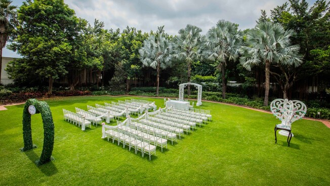 Disney’s spellbinding romance envelops an elegant green lawn, where the soft sunshine lights a path to an enchanting outdoor wedding ceremony venue – and to the eternal promises you will share.