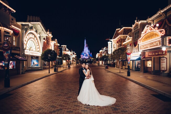 Our photography package offers you an exclusive daytime or nighttime access to iconic Hong Kong Disneyland Resort locations. Create cherished memories in fairy-tale locations that reflect the beauty and enchantment of your love.