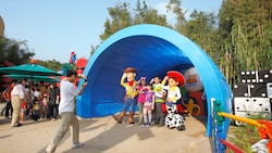 Temui dan sapa beberapa mainan favorit dari film Toy Story di barel berwarna biru terang di Toy Story Land.