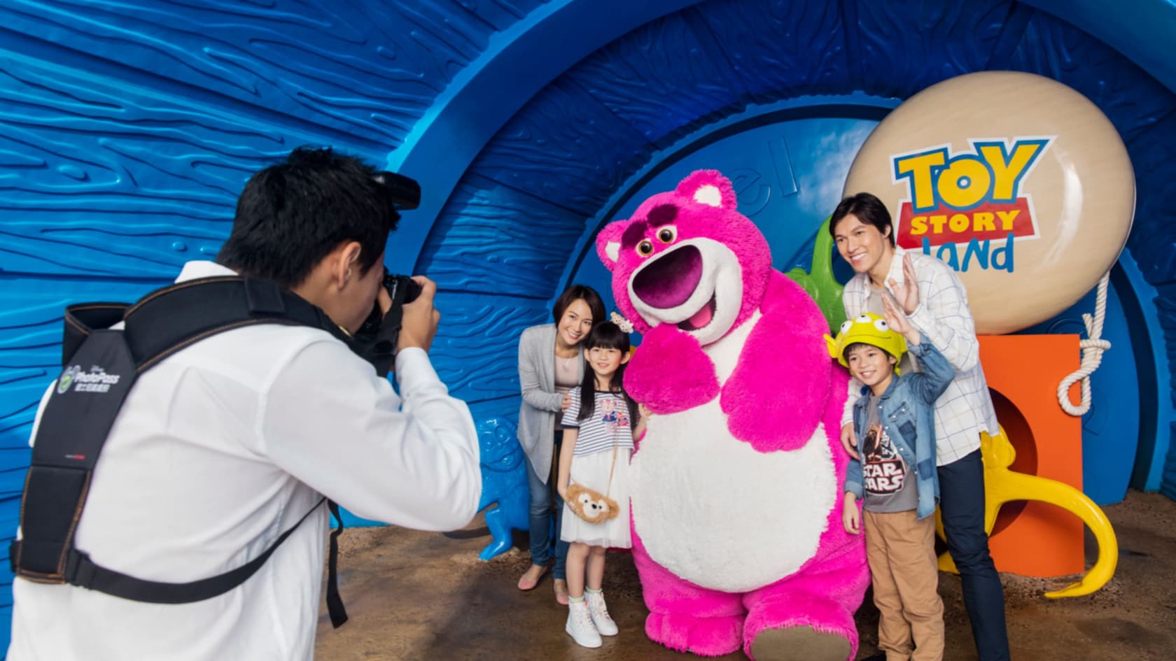 Para fotografer Disney PhotoPass siap untuk mengabadikan senyum Anda di seluruh Hong Kong Disneyland Resort, termasuk taman, hotel, dan atraksi populer.