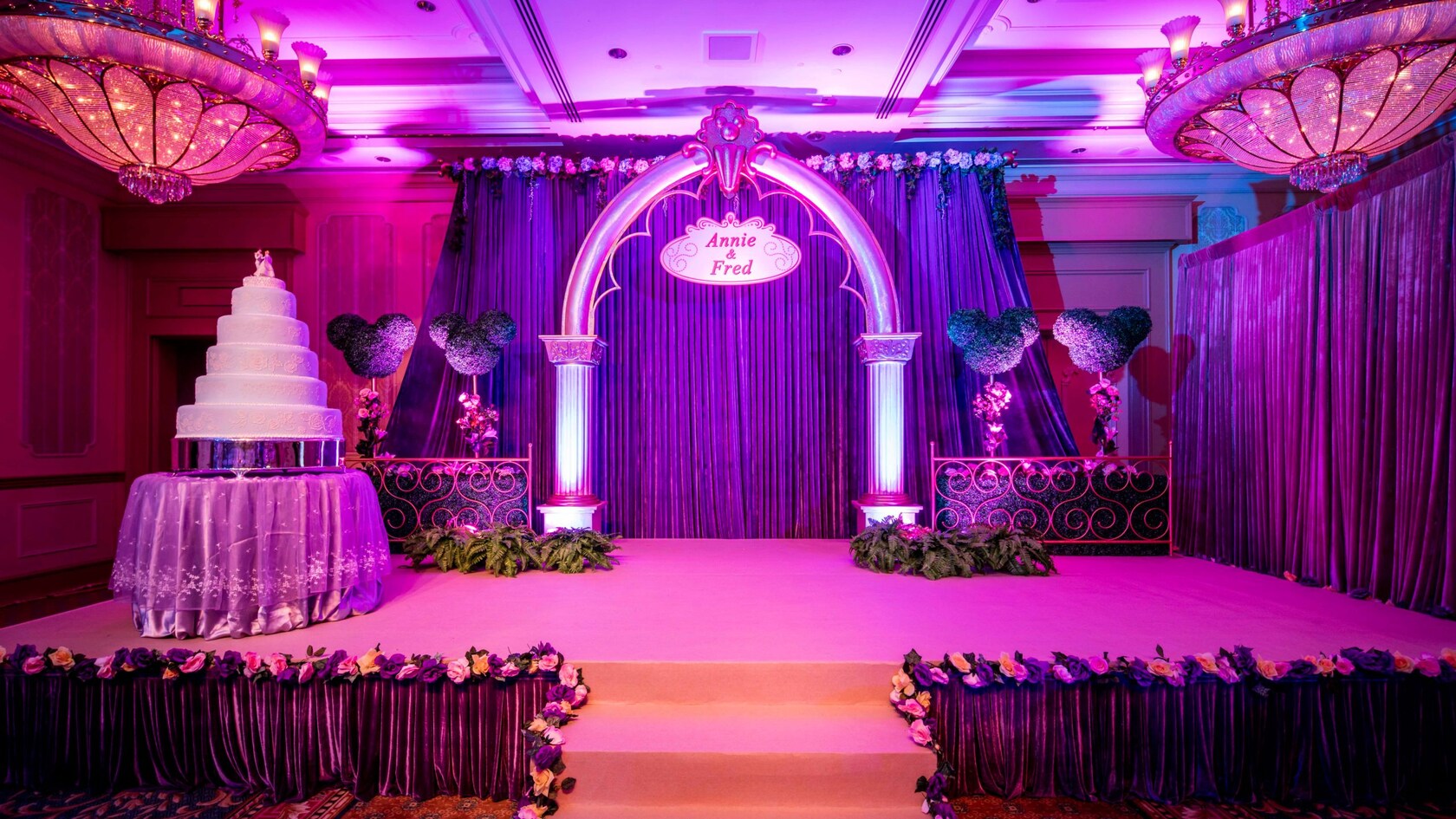 華やかなビクトリア様式の香港ディズニーランド・ホテルでは、エレガントな結婚式に最適な会場です。ホテルの特別な会場で式を挙げることで、一生忘れられない結婚式になります。
