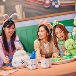 ダッフィー&フレンズのあさがおリビングルームと、クッキー・アンのキッチンを見学することができます。さらに、拡張現実技術により、海辺でオル・メルと音楽を作ったり、ジェラトーニのアートスタジオを探検したり、リーナ・ベルの森の迷路で蝶を数えたりすることもできます。