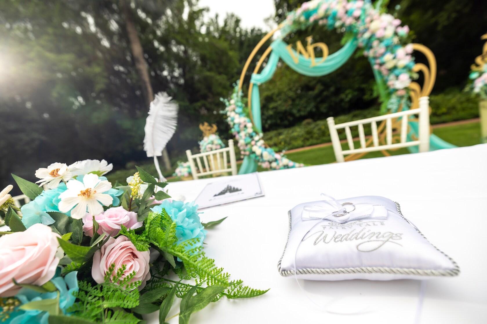 おとぎ話そのままのウエディングデコレーションセットで誓いを交わし、周囲に咲き誇る花々に祝福されながら、真実の愛を象徴する、ロマンチックで目もくらむような花冠を身に着けましょう。