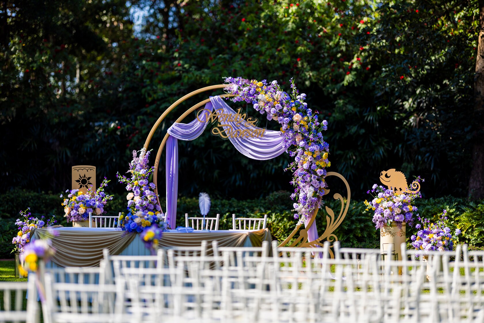 ディズニー・フェアリーテール・ウエディングのセレモニー・パッケージでは、最適なロケーション、時間帯、装飾、エレガントな多数のオプションからお選びいただけます。