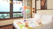 让房间充满友情的暖意,与好友一起庆祝!加购房间庆祝套装,享用达菲与好友彩旗、立体贺卡、随行杯连杯套、毛毡及气球等多款限定可爱小物,令庆祝时光更开心、更窝心。 详情