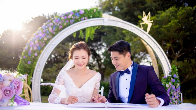 以幸福童話為主題,讓你倆置身於優雅浪漫的戶外園林,在親友們的祝福聲中延續下半輩子的幸福,留下專屬的動人時刻。