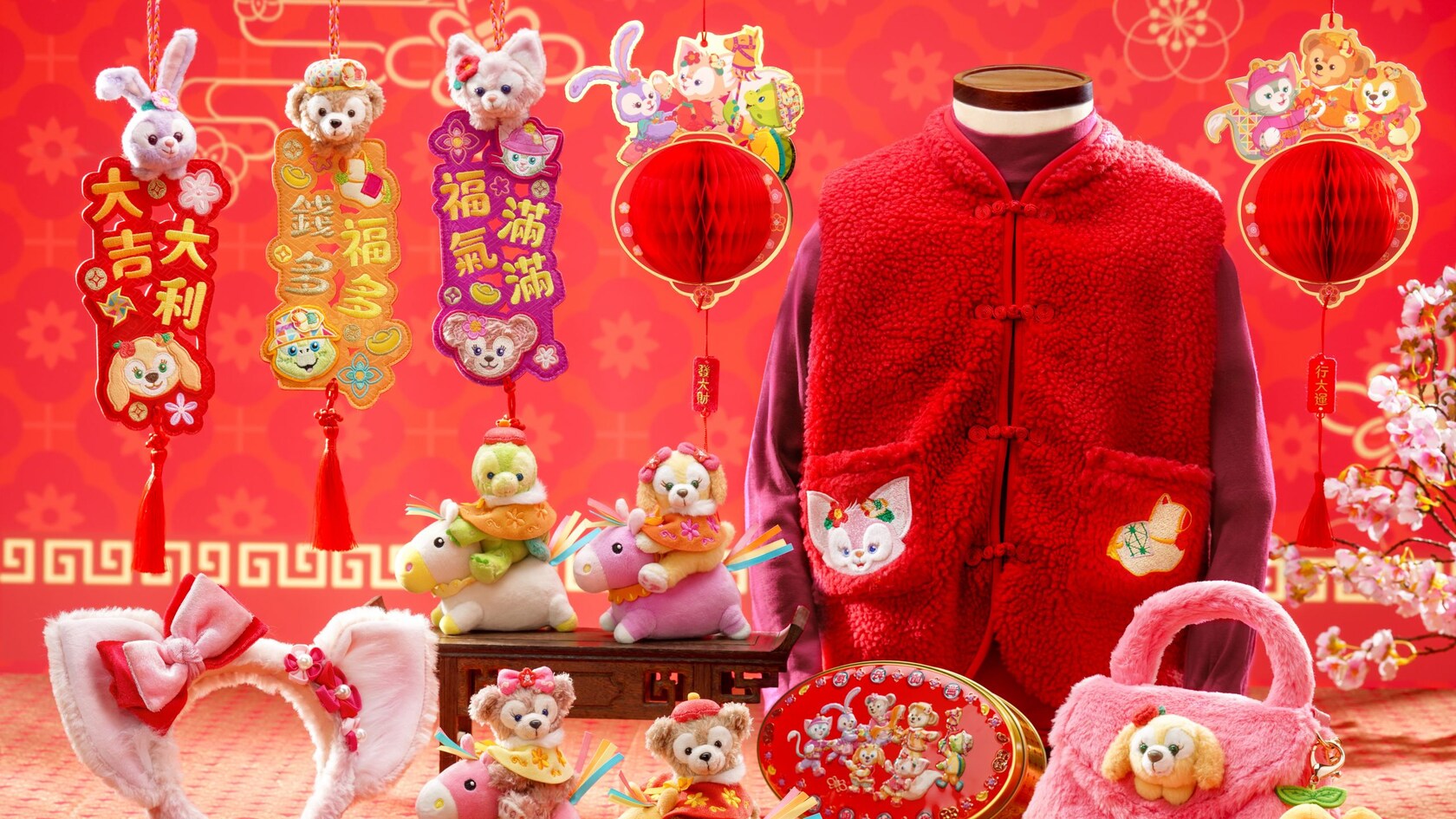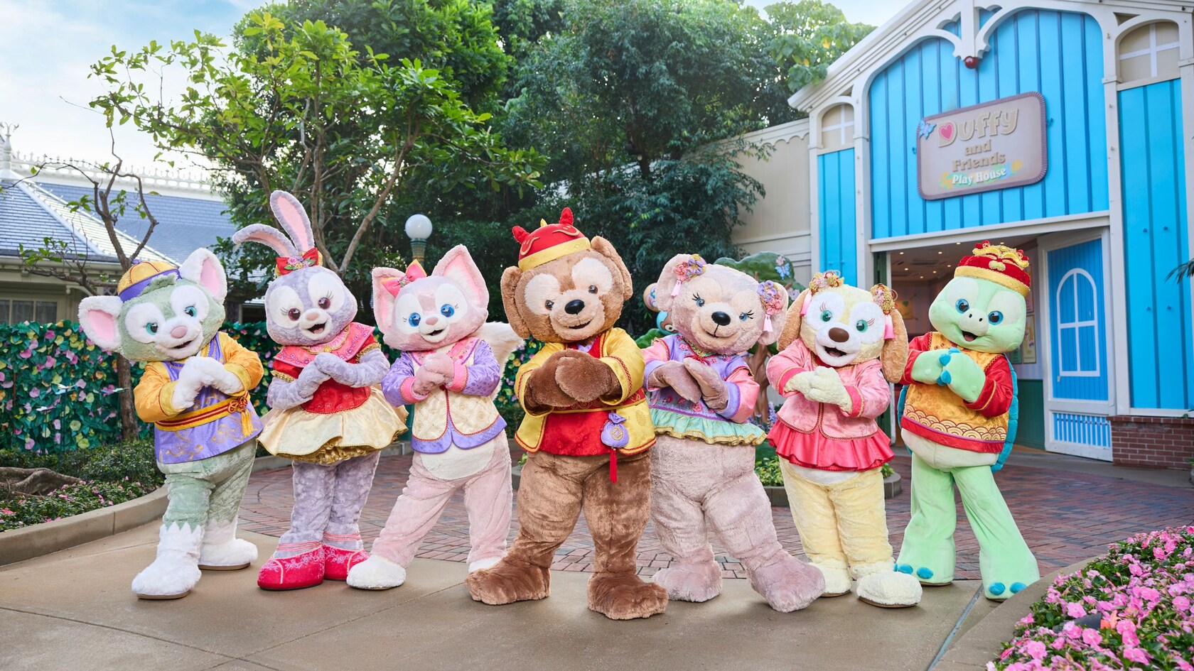 在Duffy與好友遊玩屋,Duffy、ShellieMay、StellaLou、Gelatoni、CookieAnn、’Olu Mel和LinaBell也換上新年打扮,等著與你見面抱抱。